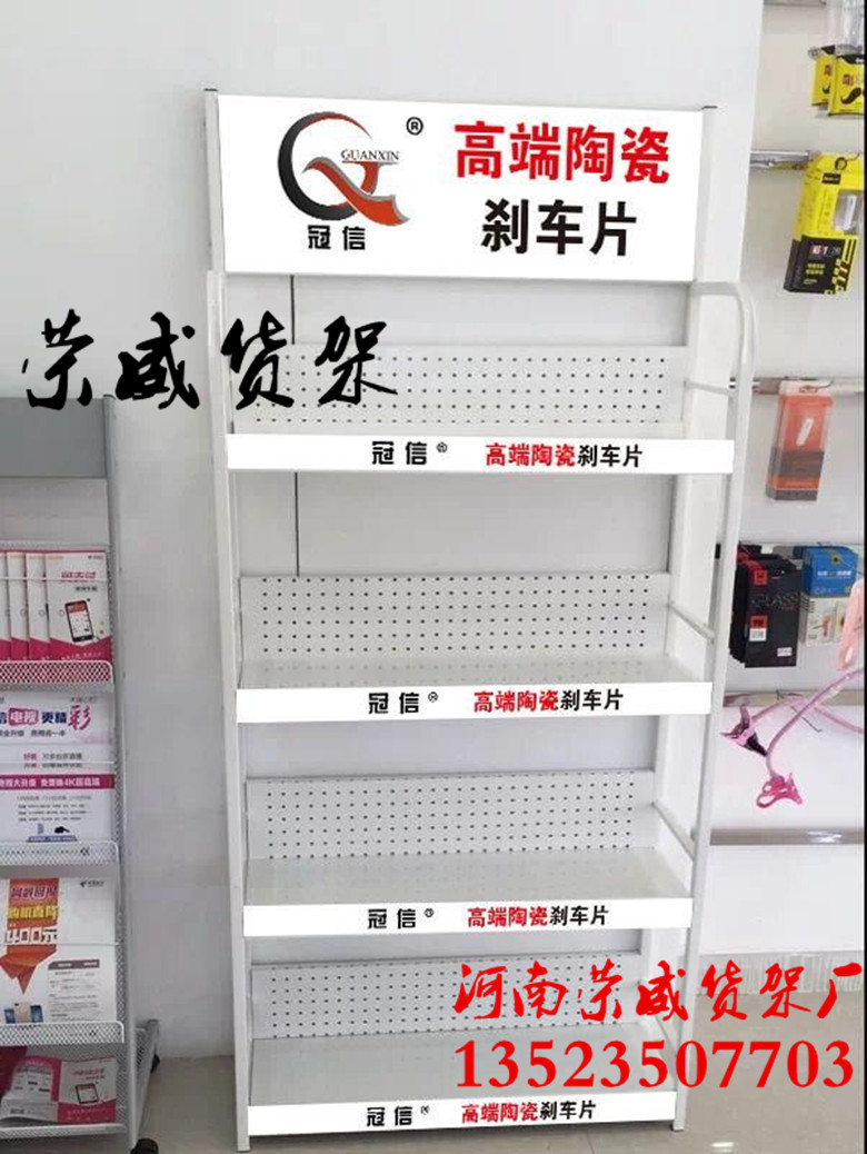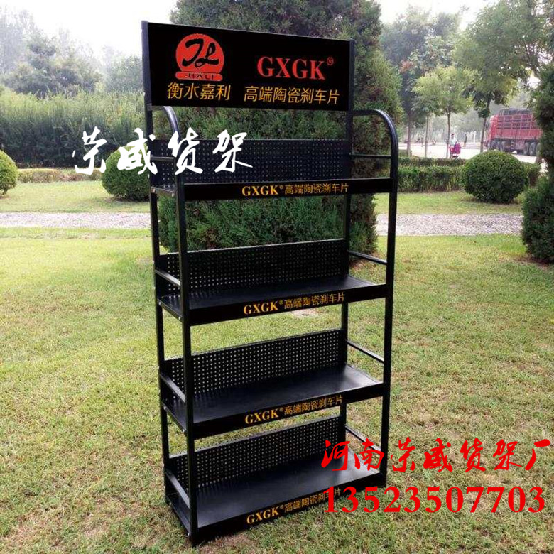 河南荣威货架厂家定做汽车刹车片展示架,汽车配件展架,车展展示架,添加剂展架产品特点: 1、产品材料多种多样,外形美观,展架稳固性强,耐用度好、具有良好的持久性。 2、产品结构采用了可拆装/可拆叠的组合方式,安装便捷,限度的减少包装体积,方便运输。