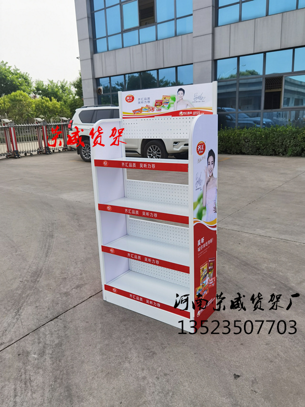 河南荣威货架厂与开封知思味食品有限公司合做知思味食品展示架荣威货架食品货架定做火腿肠展示架